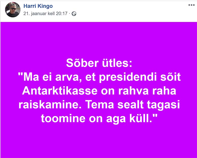 Harri Kingo facebooki seinalt võib leida sellise postituse: