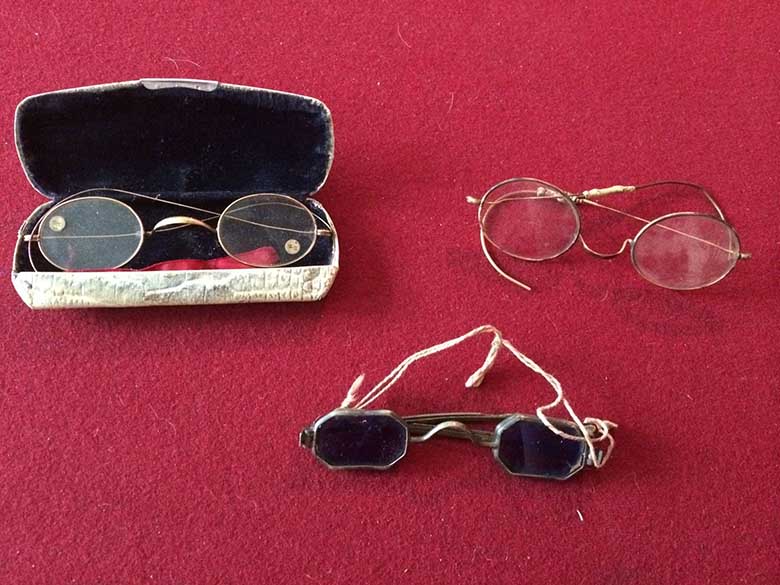 3 paari prille. Kõige huvitavamad on alumised tumedad prillid. Need võisid sellel ajal olal päieseprillid või prillid, millega sai lugeda nähtamatut tinti