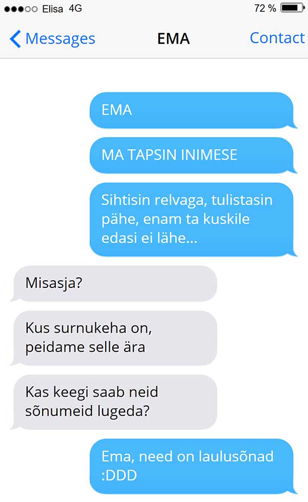 VAENE ema – selline sms pojalt…