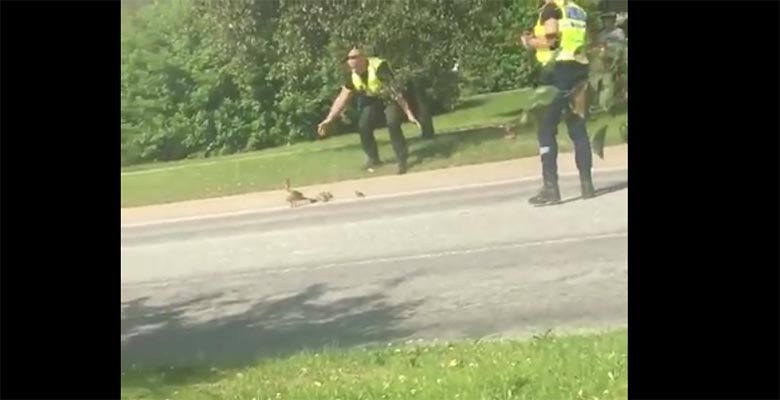 Põltsamaal peatasid kaks abivalmis politseinikku liikluse, et linnakeerisesse sattunud pardiema ja tema pisikesed pojad ohutult üle tee aidata.