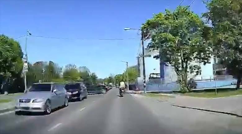 VIDEO: VÄGA tähelepanematu ja ebaviisakas autojuht – vaata, kuidas auto õppesõidu mootorrattale ette keerab